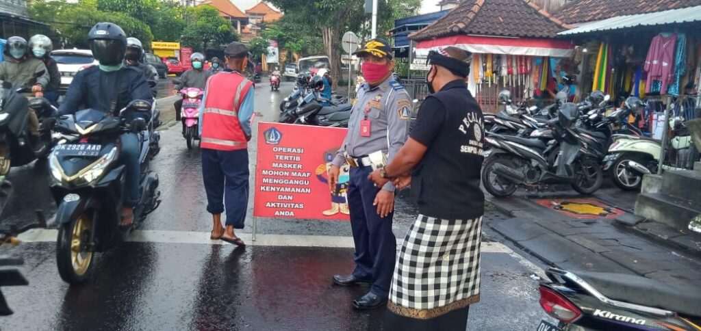 “Kegiatan Yustisi ini akan di fokuskan di tempat-tempat rawan penyebaran covid -19, seperti perkantoran, pasar tradisional, pasar modern, destinasi wisata dan usaha pariwisata, agar tidak menjadi klaster baru penyebaran covid -19,” Ujar Kasat Binmas di dampingi ibu Danramil Mengwi Mayor Ni Wayan Suhartini