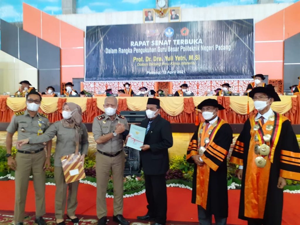 “Selamat atas pengukuhan Prof. Dr. Dra Yuli Yetri M.Si sebagai guru besar pertama Politeknik Negri Padang, semoga nantinya ini dapat menjadi motivasi bagi seluruh civitas akademika PNP,’ungkapnya