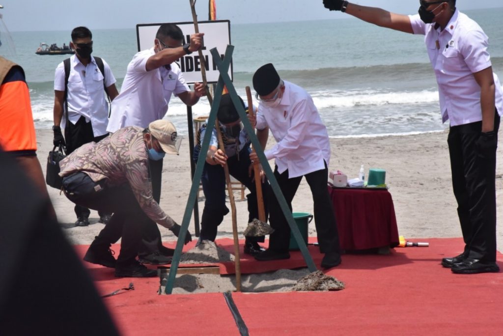 Kota Pariaman | Teliksandi.id – Wakil Presiden Republik Indonesia, K.H. Ma’ruf Amin, Tanam Pohon Pinago di Area Pantai Kata, Kecamatan Pariaman Selatan, Kota Pariaman, Propinsi Sumatra Barat, pada Selasa (6/4/2021). Kedatangan orang nomor dua di indonesia ini, berkaitan dengan peresmian Pasar Rakyat Kota Pariaman, yang merupakan bantuan dari Pemerintah Pusat, melalui Peraturan Presiden (Perpres) No.43 Tahun 2019.